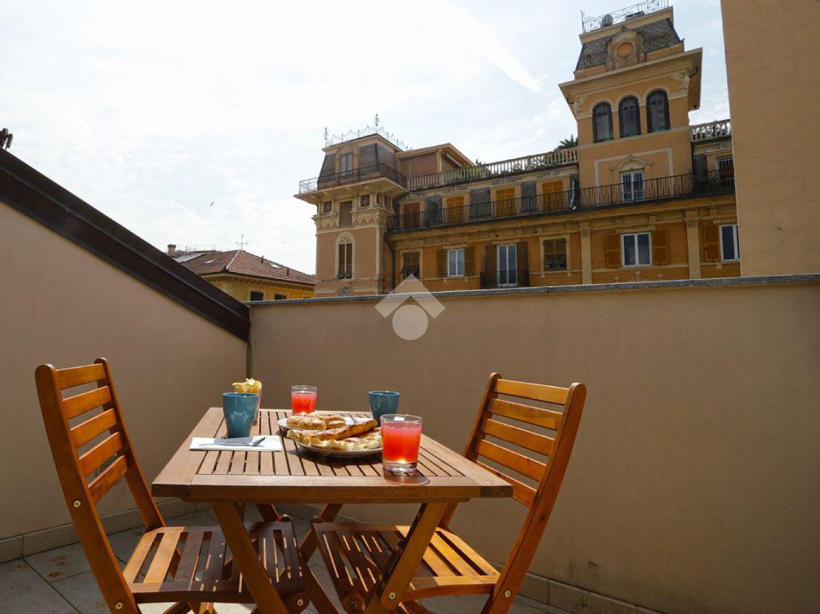 Nel cuore di Rapallo, proponiamo un appartamento signorile situato all'ultimo piano di un edificio storico con ascensore. L'immobile, ristrutturato nel 2006, offre una superficie di 100 mq suddivisa in quattro locali. La zona giorno è composta da un ampio soggiorno che si apre su un terrazzo, ideale per momenti di relax all'aperto. La cucina è separata e funzionale. La zona notte comprende due camere da letto luminose e un bagno ben rifinito. Un'ulteriore stanza può essere utilizzata come studio o sala hobby. L'appartamento è dotato di aria condizionata, garantendo comfort in ogni stagione. La posizione centrale permette di raggiungere facilmente i principali servizi e le attrazioni della città. Un'opportunità unica per chi cerca una residenza elegante e confortevole in una delle località più affascinanti della Liguria.