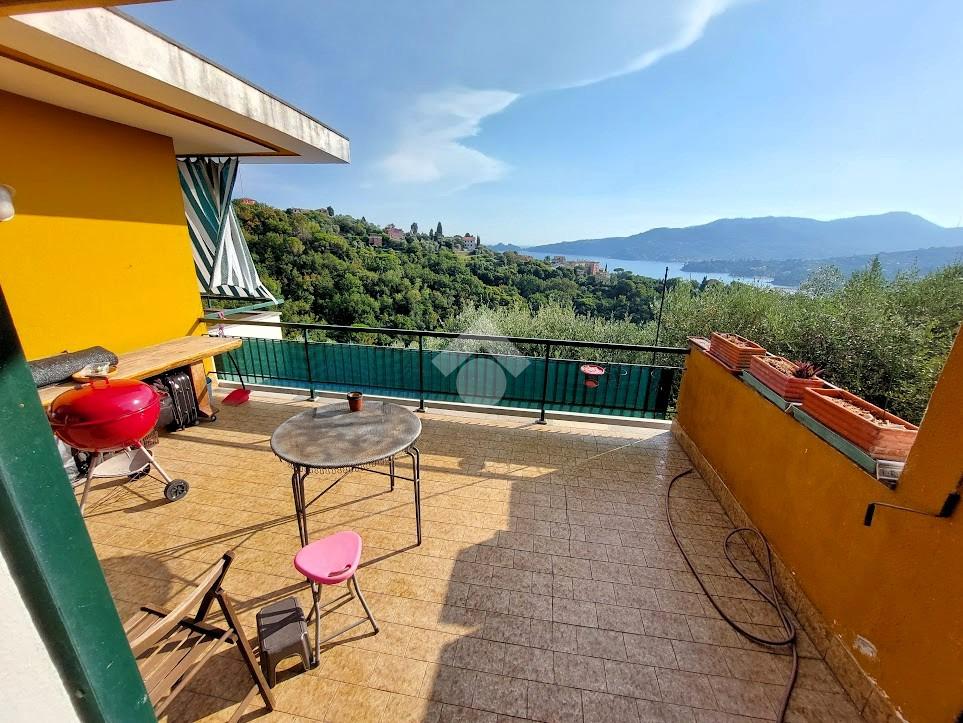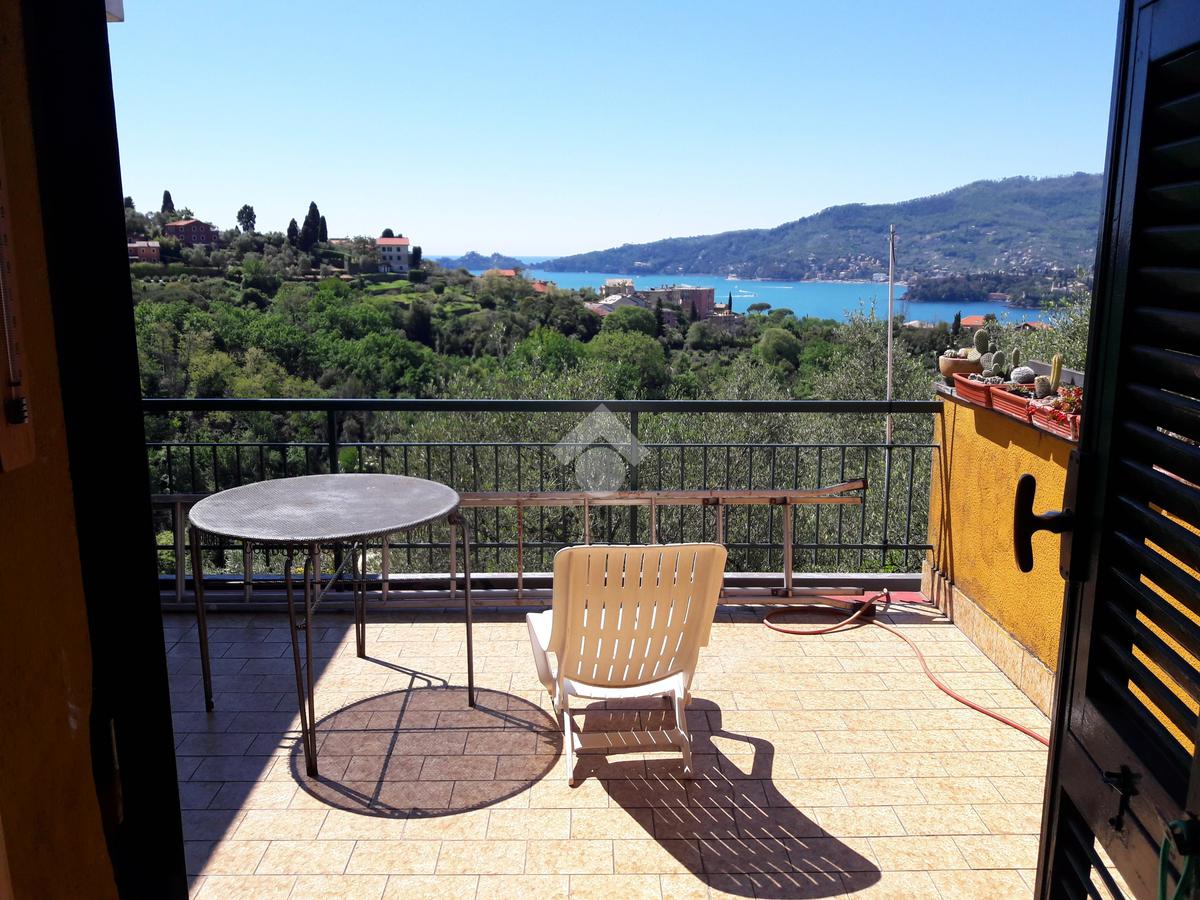 Zoagli - Nella collina di Sant'Ambrogio, a due chilometri di distanza dal castello di Rapallo, proponiamo in vendita un appartamento in villa libero su 4 lati, con accesso carrabile e vista mare su Portofino. L'immobile è composto dall'intero ultimo piano e dispone di un accesso comune con zona privata per posteggiare tre auto oltre ad un accesso secondario privato. L'appartamento è composto da un ingresso, un ampio soggiorno con affaccio sul terrazzo vista mare, dalla cucina anch'essa con accesso alla terrazza, da tre camere da letto, tutte con accesso alla balconata perimetrale e due bagni di cui uno finestrato. Subito usciti dall'abitazione abbiamo diversi spazi esterni, alcuni lastricati ed alcuni a giardino. Quale pertinenza vi è un'area privata per posteggiare comodamente tre auto, all'interno del cancello elettrico che separa la proprietà dalla via principale. L'esposizione è ottima, esponendo su tutti e quattro i lati con affaccio principale verso sud e verso Portofino. La vista è aperta sul golfo e sulla collina di Sant'Ambrogio, rendendo soleggiato ogni angolo della casa per tutta la giornata. L'immobile, essendo, in parte, interamente da rinnovare, si presta sia per il mantenimento dell'attuale divisione sia per una risistemazione interna in base alle proprie esigenze. La zona è tranquilla, soleggiata ed a 5 minuti di macchina dal centro storico di Rapallo, il che la rende ideale sia per prima casa che per casa vacanza senza i rumori della città. Il riscaldamento è autonomo, senza alcuna spesa condominiale.